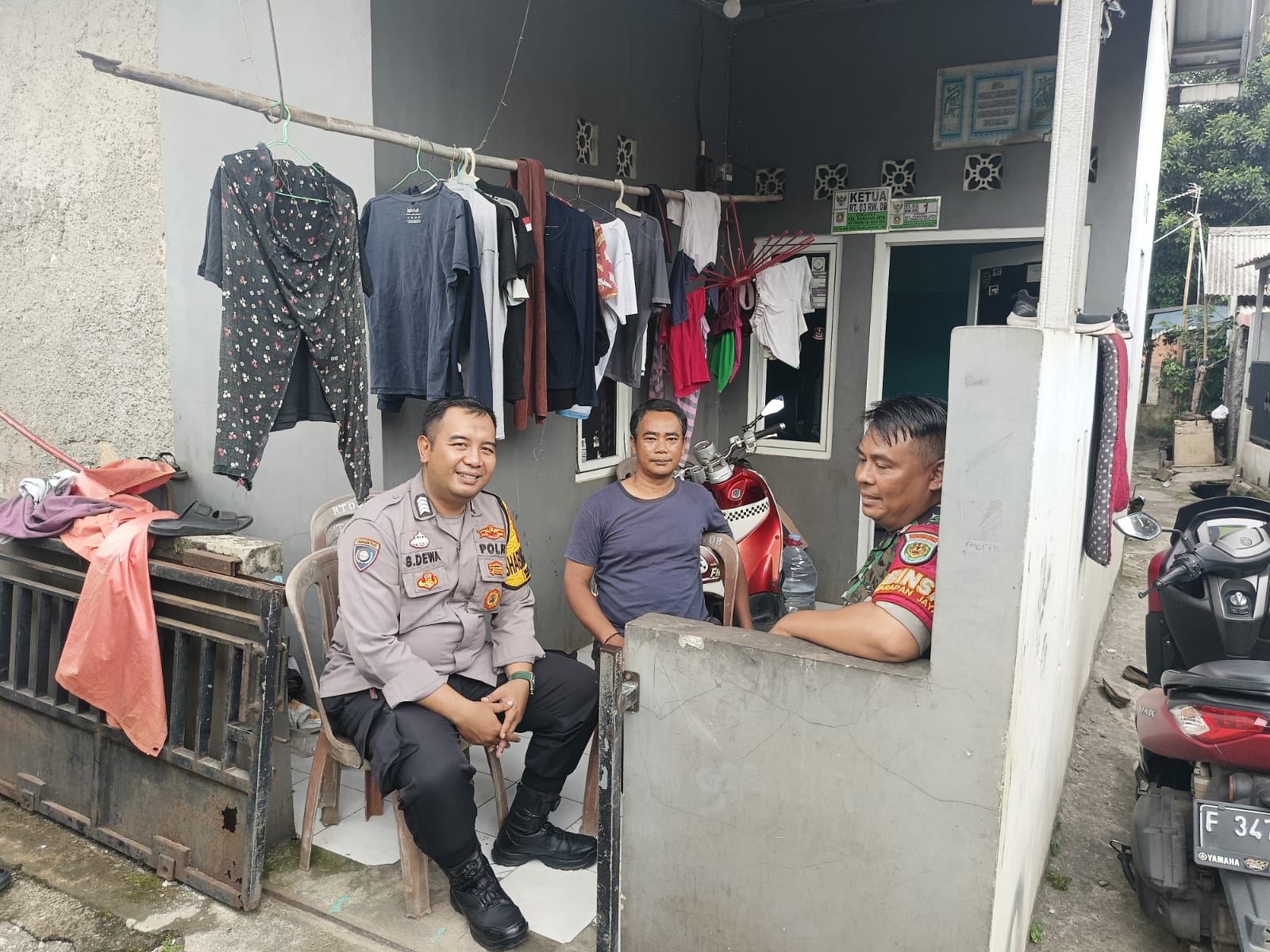 Kegiatan sambang dimulai pukul 11.00 WIB hingga selesai dengan menyasar tokoh masyarakat di lingkungan RT 03 RW 08. Pada kesempatan tersebut, petugas menyambangi Ketua RT 03/08, Bapak Syahroni, untuk menjalin komunikasi dan koordinasi dalam upaya pemeliharaan keamanan wilayah.