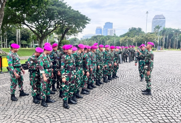 JAKARTA, BUSERJATIM.COM GROUP – Dalam rangka meningkatkan kesiap siagaan dan profesionalisme dalam tugas Pengamanan Perkembangan Situasi Nasional (Pam Bangsitnas), para prajurit Petarung Pasopati Yonif 2 Marinir melaksanakan latihan Penanggulangan Huru Hara (PHH) bersama personel Komando Pasukan Gerak Cepat (Korpasgat), bertempat di Lapangan Silang Monas, Jakarta Pusat, Selasa (9/12/2025).