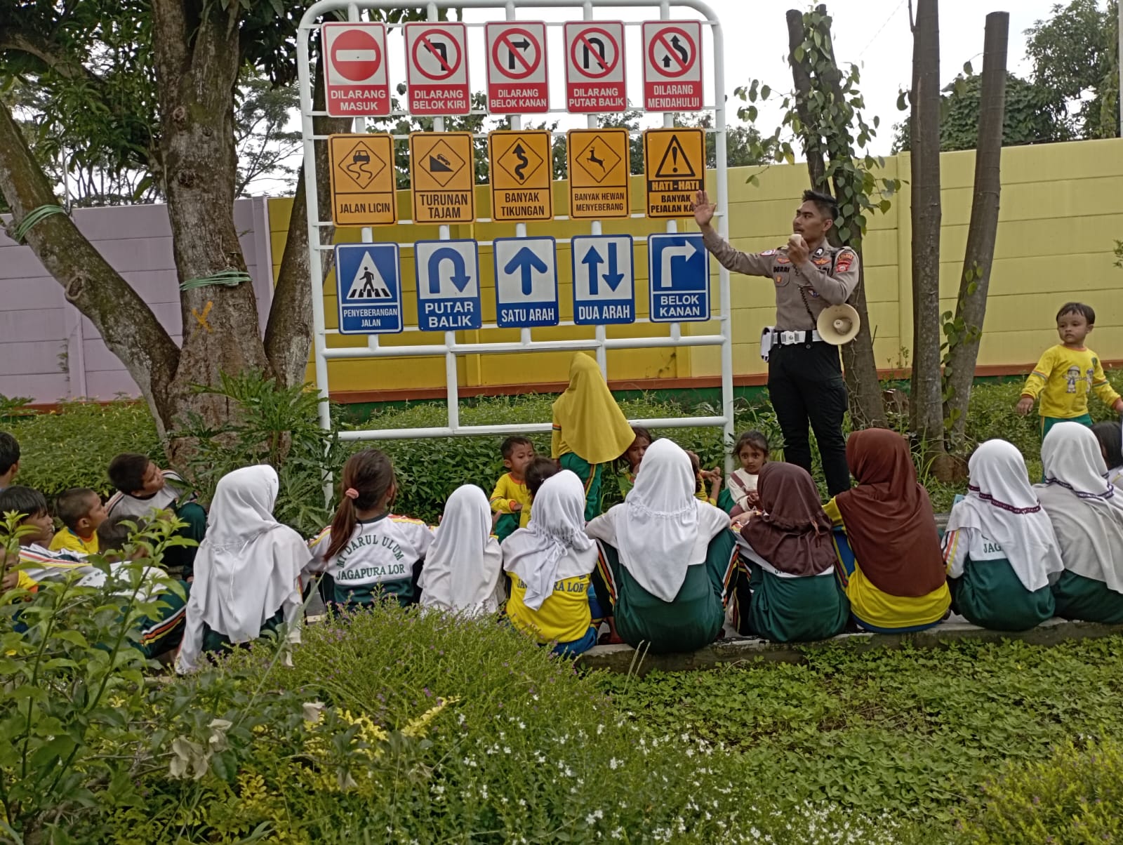 Dalam kegiatan tersebut, petugas Dikmas Lantas memberikan pengetahuan dasar kepada para siswa mengenai berbagai jenis rambu lalu lintas, fungsi, serta pentingnya memahami aturan berlalu lintas sejak usia dini. Para siswa juga diajak berinteraksi langsung melalui contoh rambu nyata serta permainan edukatif yang dirancang untuk memudahkan pemahaman.