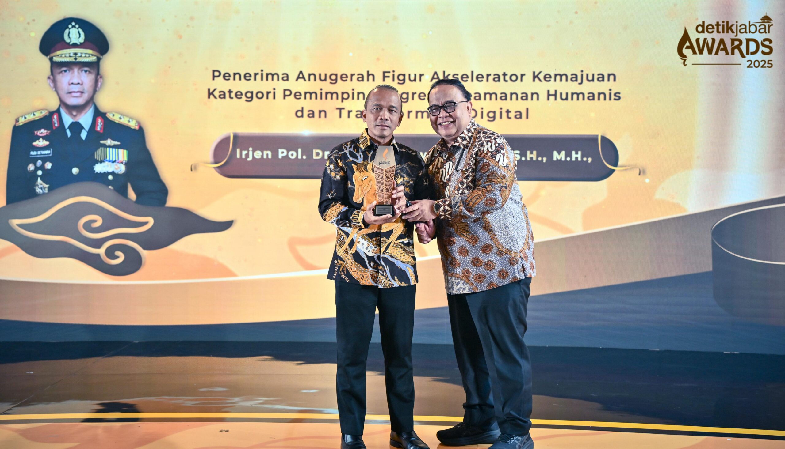 Kapolda Jabar Irjen Pol. Rudi Setiawan menerima penghargaan dalam acara Detik Jabar Award 2025, bertempat di Hotel Salak The Heritage Kota Bogor, Rabu (10/12/2025)