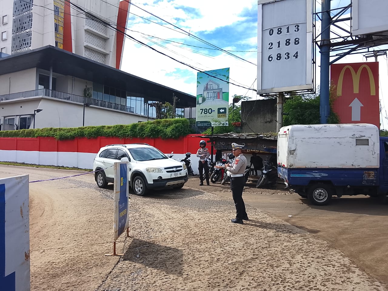 Kapolsek Babakan Madang AKP Trias Karso Yuliantoro, S.Tr.K., S.I.K. menjelaskan bahwa kehadiran personel kepolisian di lokasi bertujuan untuk memastikan arus kendaraan tetap lancar serta mencegah terjadinya kecelakaan lalu lintas selama proses perbaikan berlangsung.