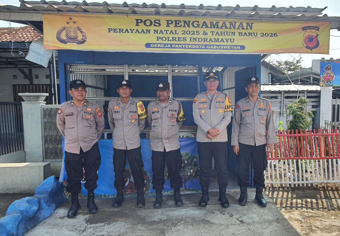 Indramayu – Sebagai bagian dari pengamanan Natal 2025 dan Tahun Baru 2026, Polres Indramayu menyiagakan personel di Pos Pengamanan (Pospam) Gereja Pantekosta Gabuswetan, Kecamatan Gabuswetan, Kabupaten Indramayu, Selasa (23/12/2025).