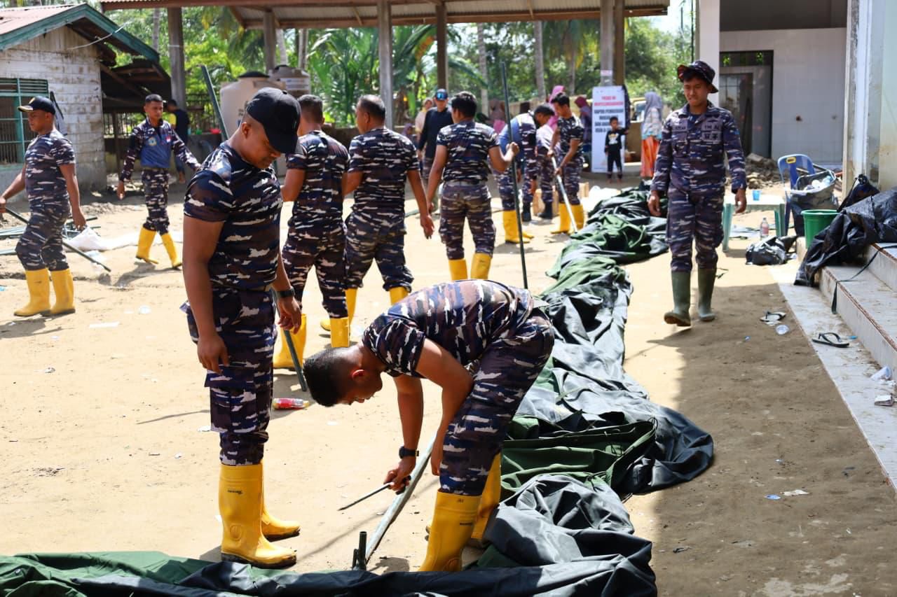 Namun, pengobatan bukan hanya soal fisik. Memahami adanya beban psikis pascabencana, tim Dispsial menggelar sesi trauma healing. Sebanyak 45 orang dewasa diajak berdialog, sementara puluhan anak-anak diajak bermain untuk mengusir rasa trauma yang menyelimuti mereka. Di sudut lain, personel Lanal Lhokseumawe bersama Kopaska tampak berkeringat bersama warga membersihkan lingkungan agar kembali asri.