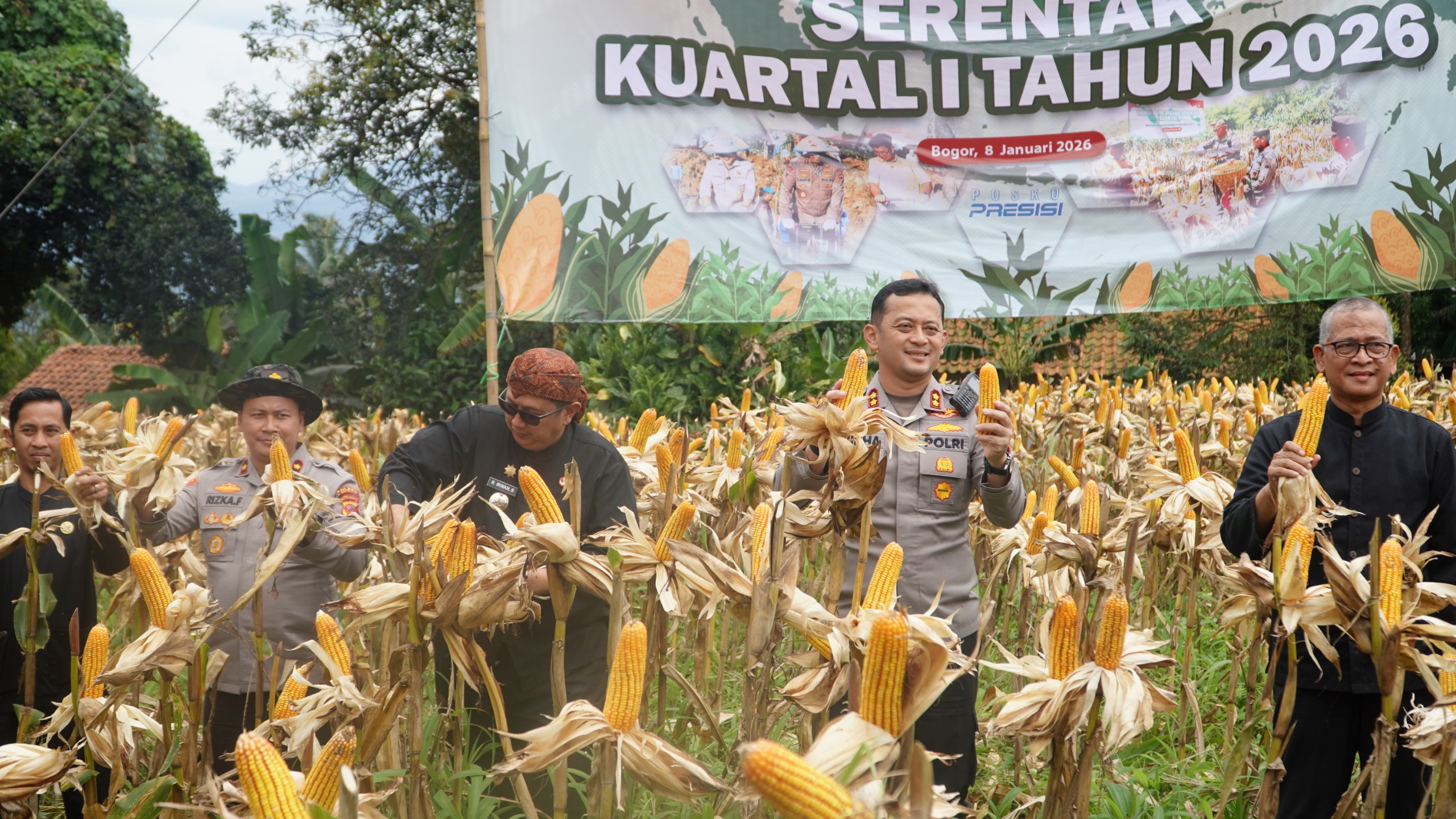 Bogor – Polres Bogor turut mendukung program ketahanan pangan nasional dengan melaksanakan kegiatan Panen Raya Jagung Serentak Kuartal I Tahun 2026, yang berlangsung pada Kamis (8/1/2026) pukul 10.40 WIB di Kampung Cidangdeur , Desa Tugu Jaya, Kecamatan Cigombong, Kabupaten Bogor.