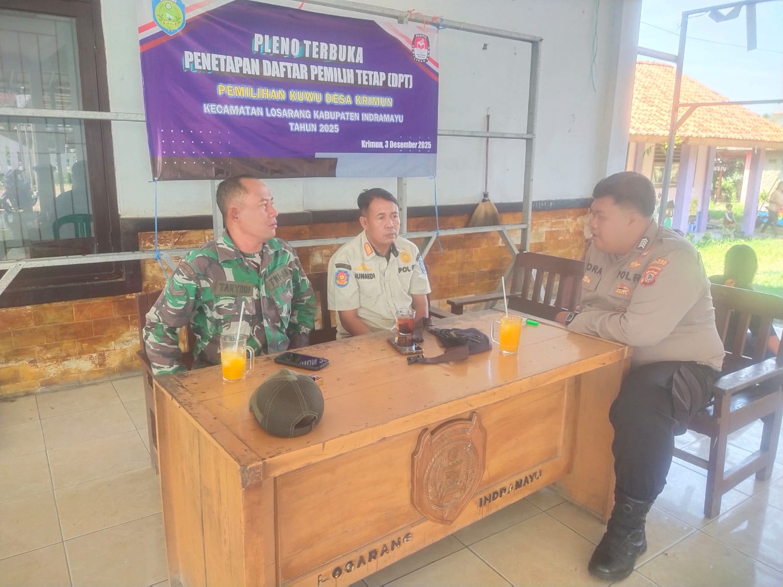 Indramayu — Sinergitas antara Polsek Losarang Polres Indramayu Polda Jabar, Koramil, dan Satuan Polisi Pamong Praja (Satpol PP) kembali ditunjukkan dalam upaya menjaga situasi keamanan dan ketertiban masyarakat (kamtibmas) di Desa Krimun, Kecamatan Losarang, Kabupaten Indramayu, Sabtu (10/1/2026).
