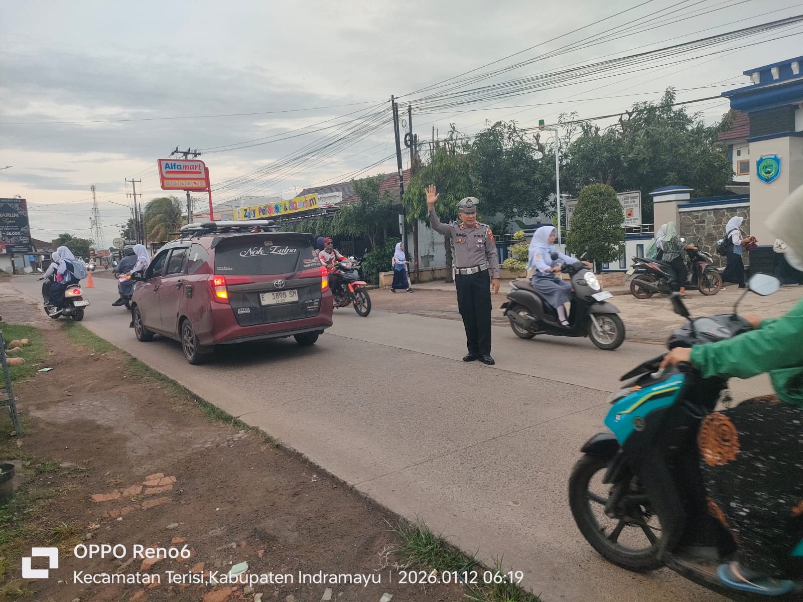 Indramayu — Kepedulian Polri terhadap keselamatan pelajar kembali ditunjukkan melalui kehadiran personel Unit Lalu Lintas Polsek Terisi Polres Indramayu Polda Jabar yang melaksanakan pengaturan arus lalu lintas di depan SMP Negeri 1 Terisi, Kecamatan Terisi, Kabupaten Indramayu, Senin pagi (12/1/2026).
