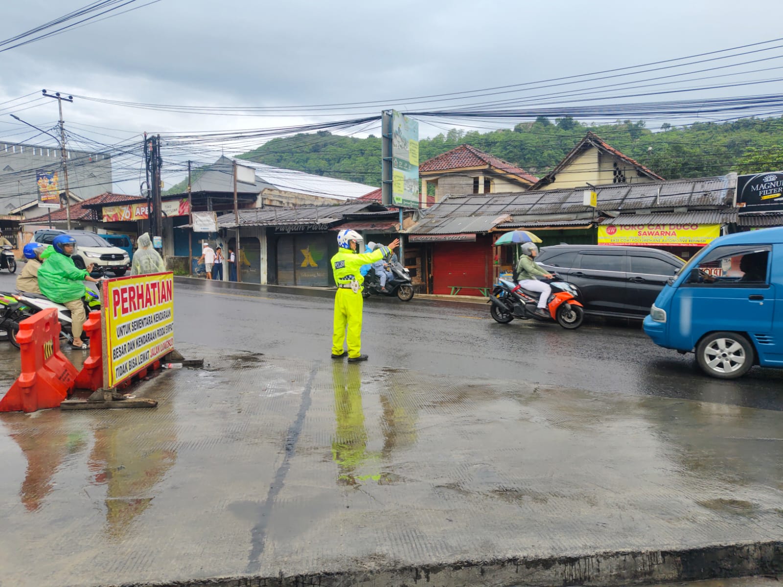 Anggota Lantas Polsek Ciampea Polres Bogor membantu masyarakat melakukan pengaturan lalu lintas di titik titik rawan kemacetan serta petugas juga melakukan pengaturan di titik titik rawan Gar lalu lintas dan Kecelakaan lalu lintas.