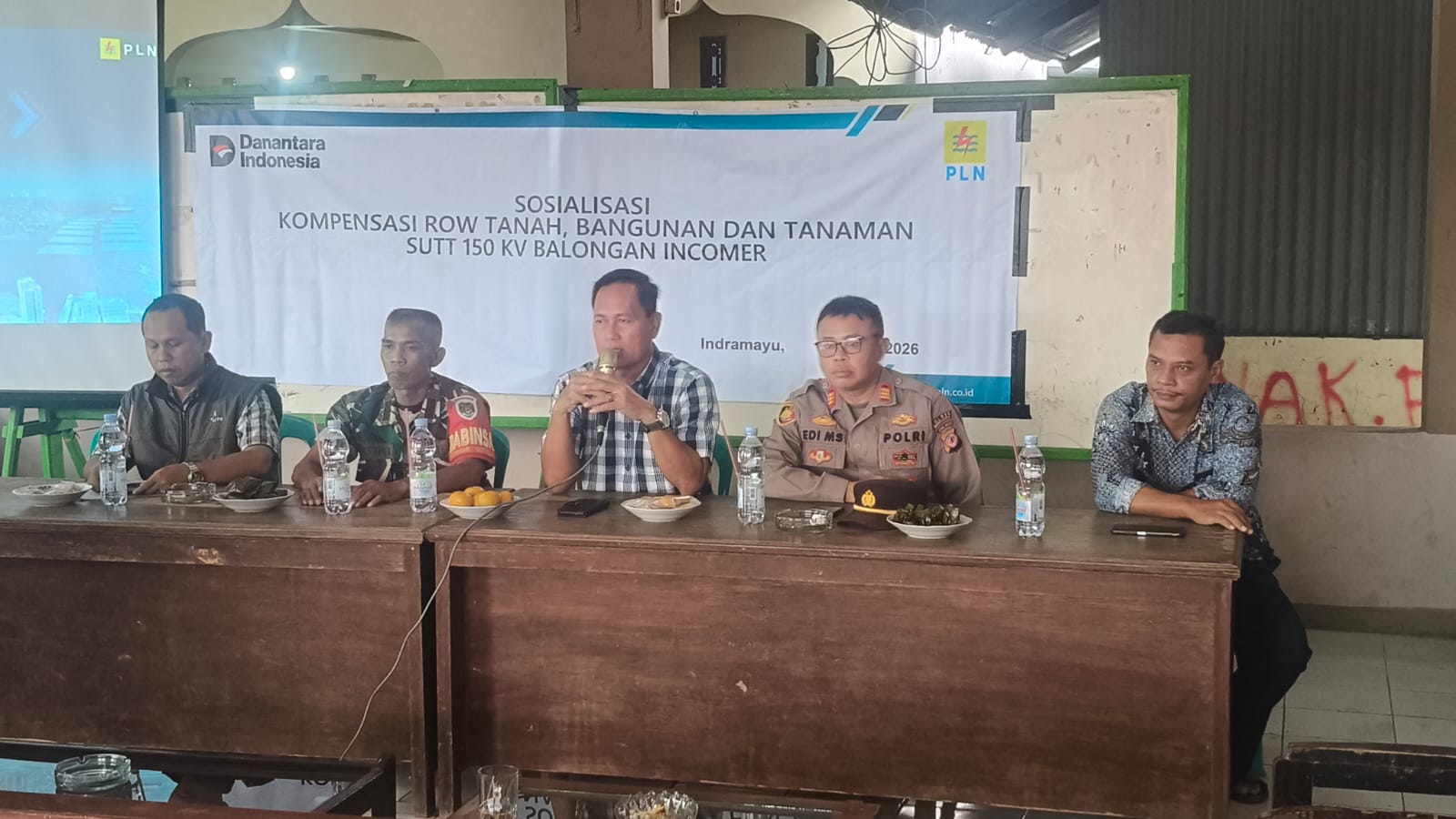 Indramayu – Kepolisian Sektor (Polsek) Sliyeg Polres Indramayu Polda Jabar turut menghadiri sosialisasi kompensasi tamah jalur SUTT 150kV Balongan Incomer di Desa Tugu Kidul Kec. Sliyeg Kab. Indramayu, Kamis (22/1/2026).