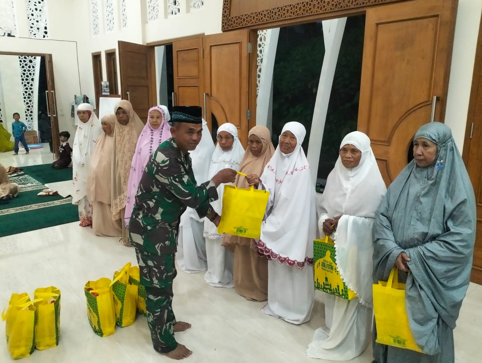 Kegiatan tersebut diawali dengan pelaksanaan sholat subuh berjamaah bersama masyarakat, dilanjutkan dengan pemberian santunan kepada anak yatim, lansia, serta anak-anak yang mengalami stunting. Kehadiran unsur TNI dalam kegiatan keagamaan dan sosial ini mendapat sambutan hangat dari warga setempat.