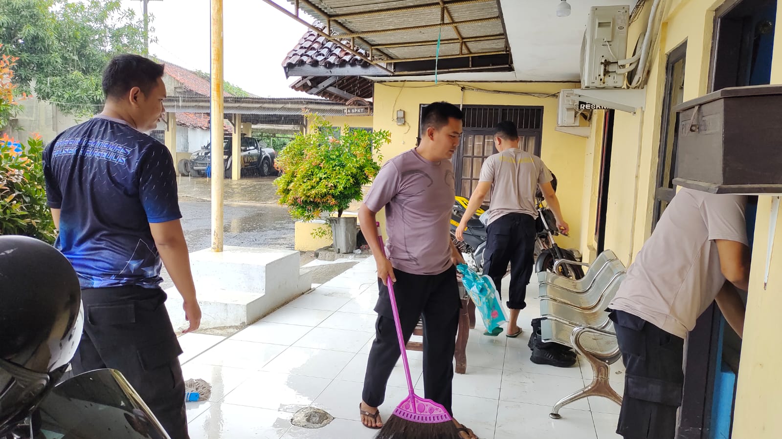Para personel tampak membersihkan area dalam mushola, halaman, hingga lingkungan sekitar mako guna menciptakan suasana yang bersih dan nyaman.