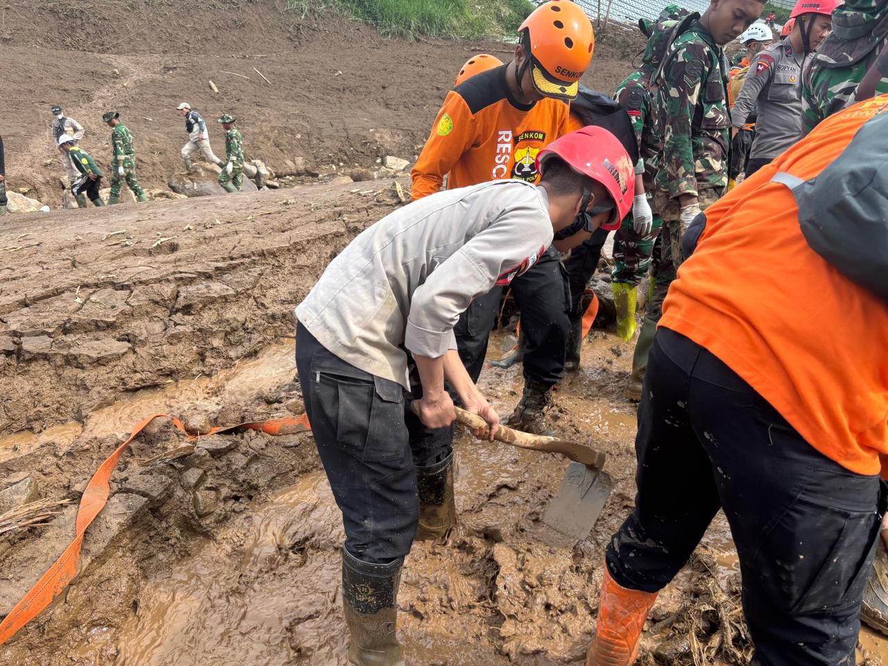 Kabid Humas Polda Jabar Kombes Pol Hendra Rochmawan S.I.K., M.H mengatakan bahwa Sejak pagi hari, personel Tim SAR gabungan melakukan pencarian korban di sejumlah titik rawan dengan tetap mengutamakan keselamatan mengingat kondisi tanah yang masih labil. Selain fokus pada evakuasi, Batalyon B Pelopor juga menurunkan Tim Dapur Lapangan untuk membantu memenuhi kebutuhan konsumsi korban bencana dan petugas di lapangan.