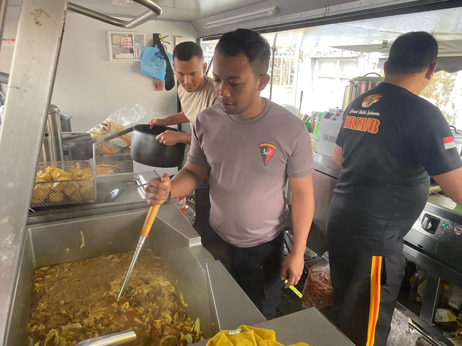 Kehadiran dapur lapangan ini bertujuan memberikan pelayanan makanan siap saji bagi para pengungsi dan warga yang terdampak, sehingga kebutuhan dasar mereka tetap terpenuhi di tengah kondisi darurat.