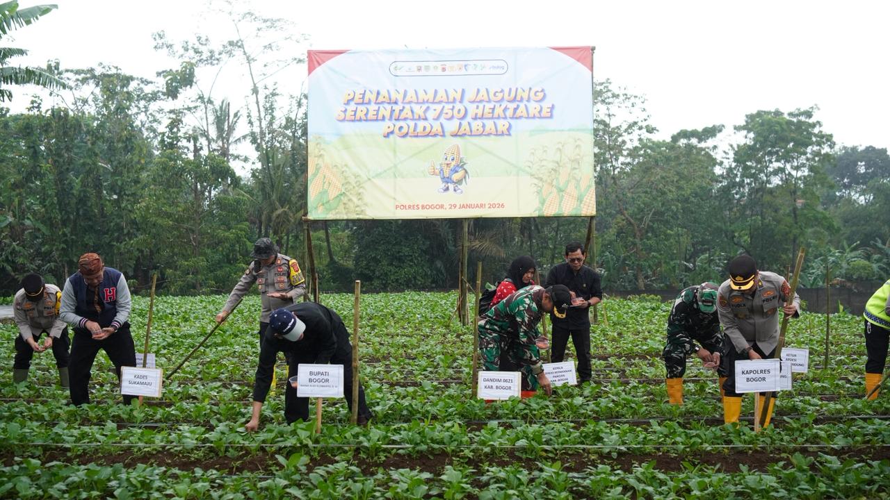 BOGOR – Polres Bogor melaksanakan kegiatan penanaman jagung serentak kuartal I dalam rangka mendukung program Polri untuk ketahanan pangan nasional.