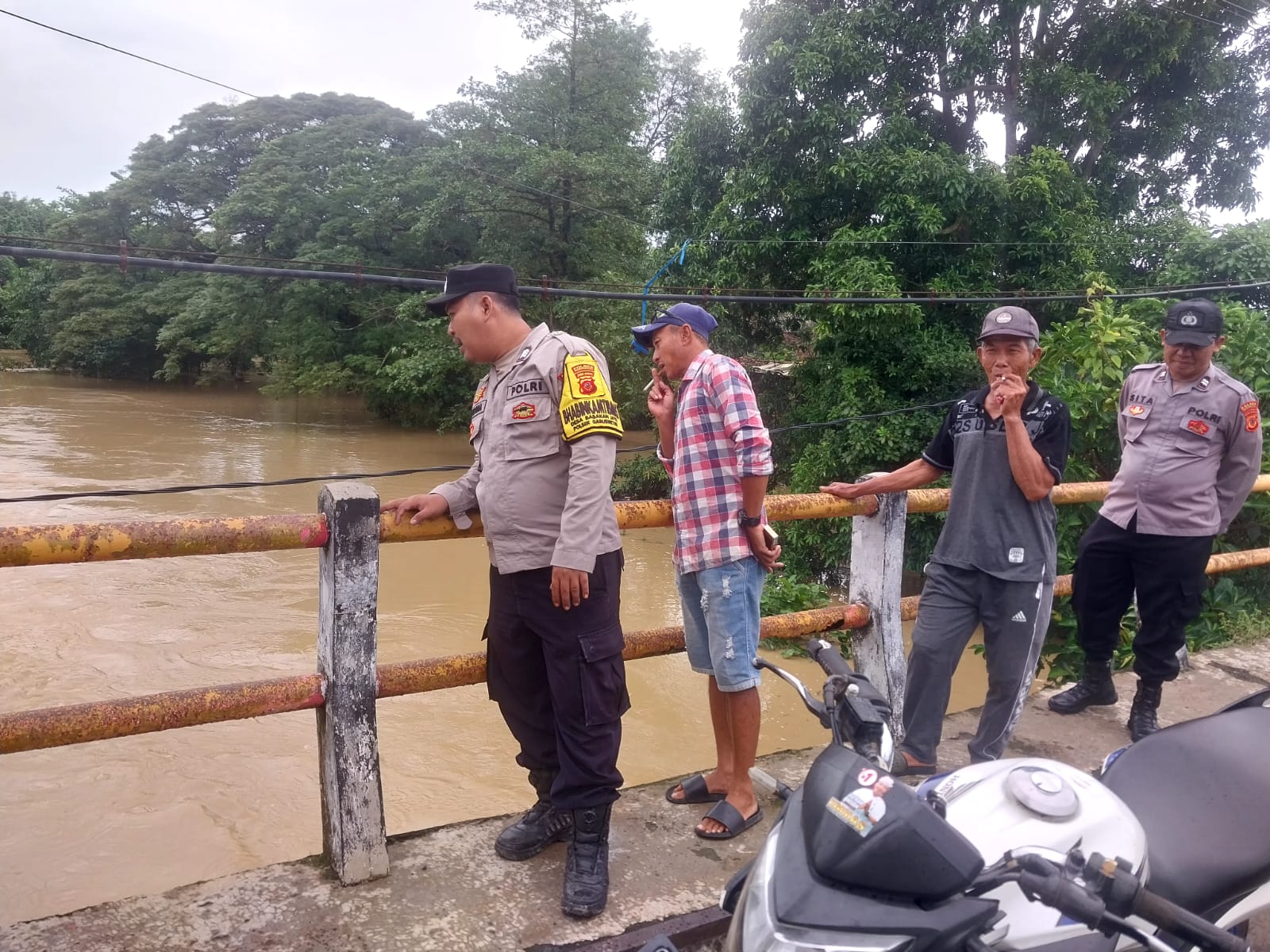 Indramayu – Personel Polsek Gabuswetan Polres Indramayu Polda Jawa Barat monitoring perkembangan debit air Sungai Cilalanang di Desa Babakanjaya, Kecamatan Gabuswetan, Kabupaten Indramayu, Jum’at (30/1/2026).