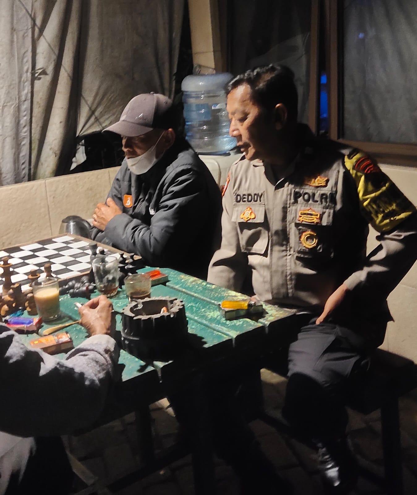 Dalam sambangnya, Bhabinkamtibmas melaksanakan Dialog dengan warga atau petugas ronda sekaligus menyampaikan pesan kamtibmas agar meningkatkan kewaspadaan terhadap para pelaku kejahatan,