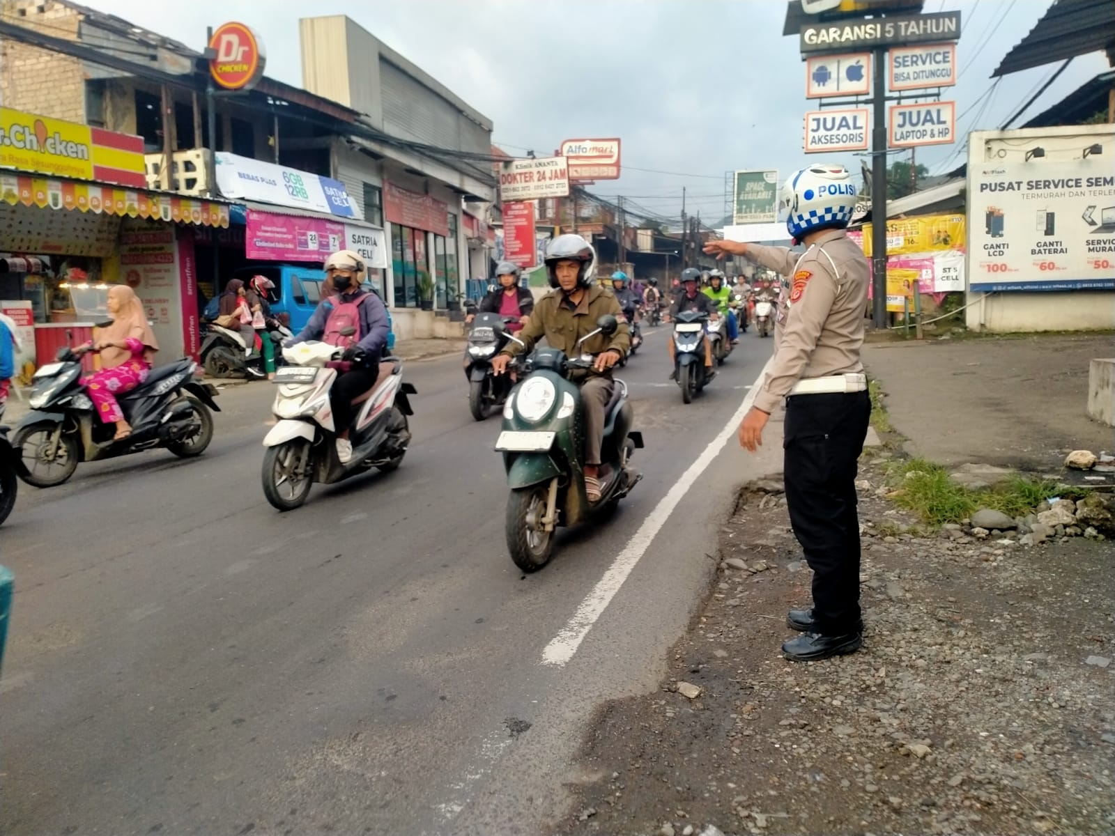 Anggota Lantas Polsek Ciampea Polres Bogor membantu masyarakat mengatur lalulintas dan ketika hendak menyebrang jalan, petugas juga melakukan pengaturan pengendara kendaraan bermotor agar terciptanya kamseltibcarlantas.