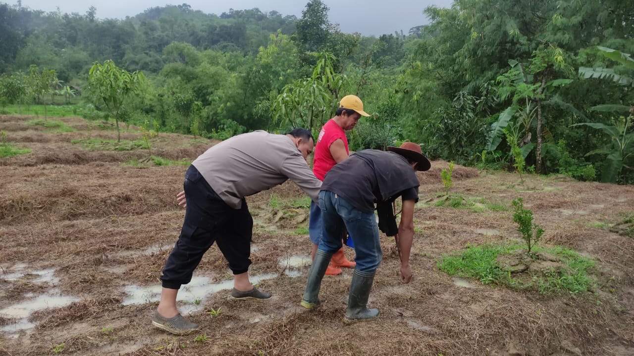 Aipda M. Tajul Mutaqin menyampaikan bahwa keterlibatan Polri dalam kegiatan ini merupakan bentuk dukungan nyata terhadap program pemerintah dalam memperkuat ketahanan pangan serta mendorong pemanfaatan lahan produktif di wilayah pedesaan.