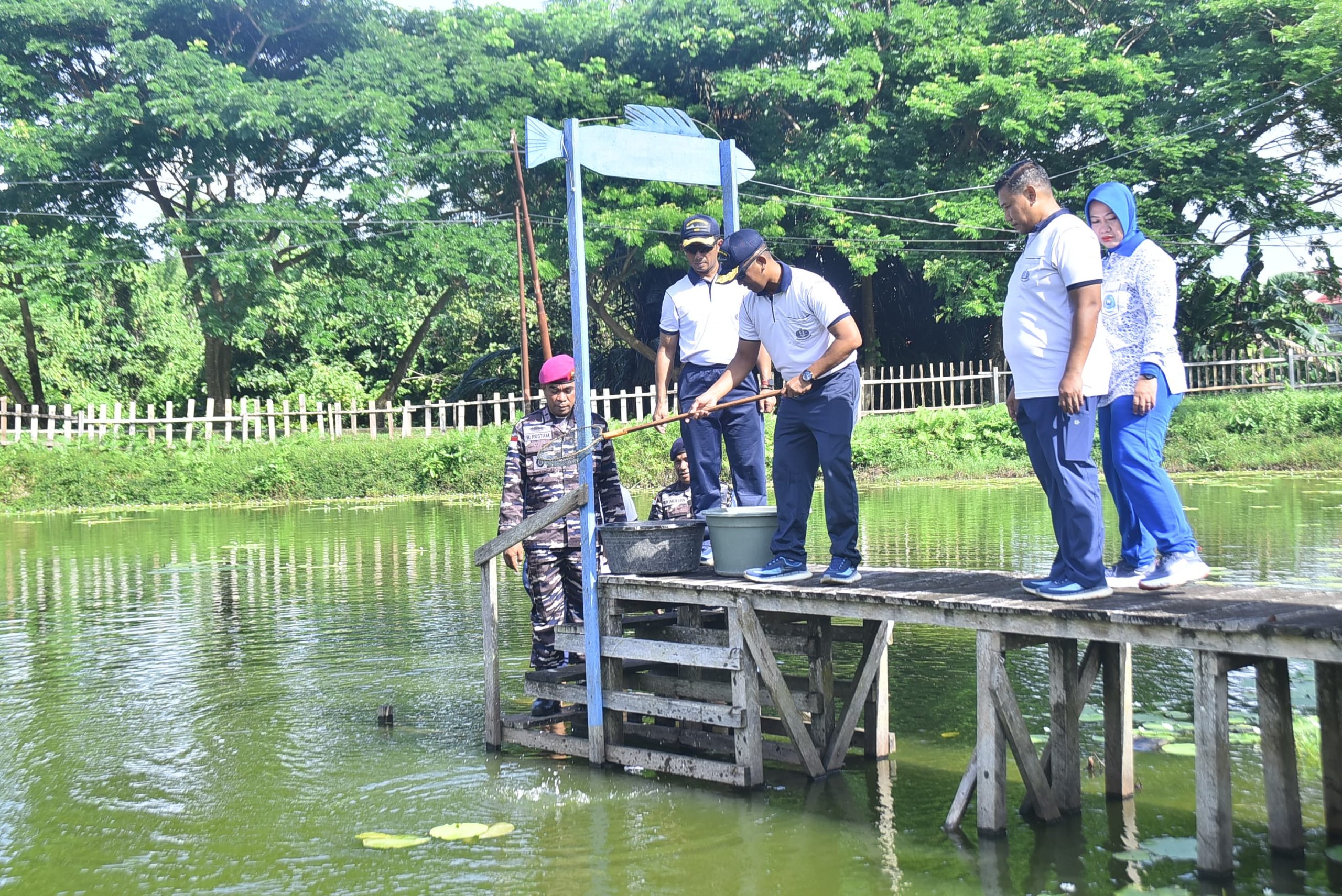 Pererat Sinergitas, Satgas Trisila 2026 dan Lanal Aru Gelar Olahraga Bersama, Penanaman Bibit Tomat, dan Penebaran Bibit Lele