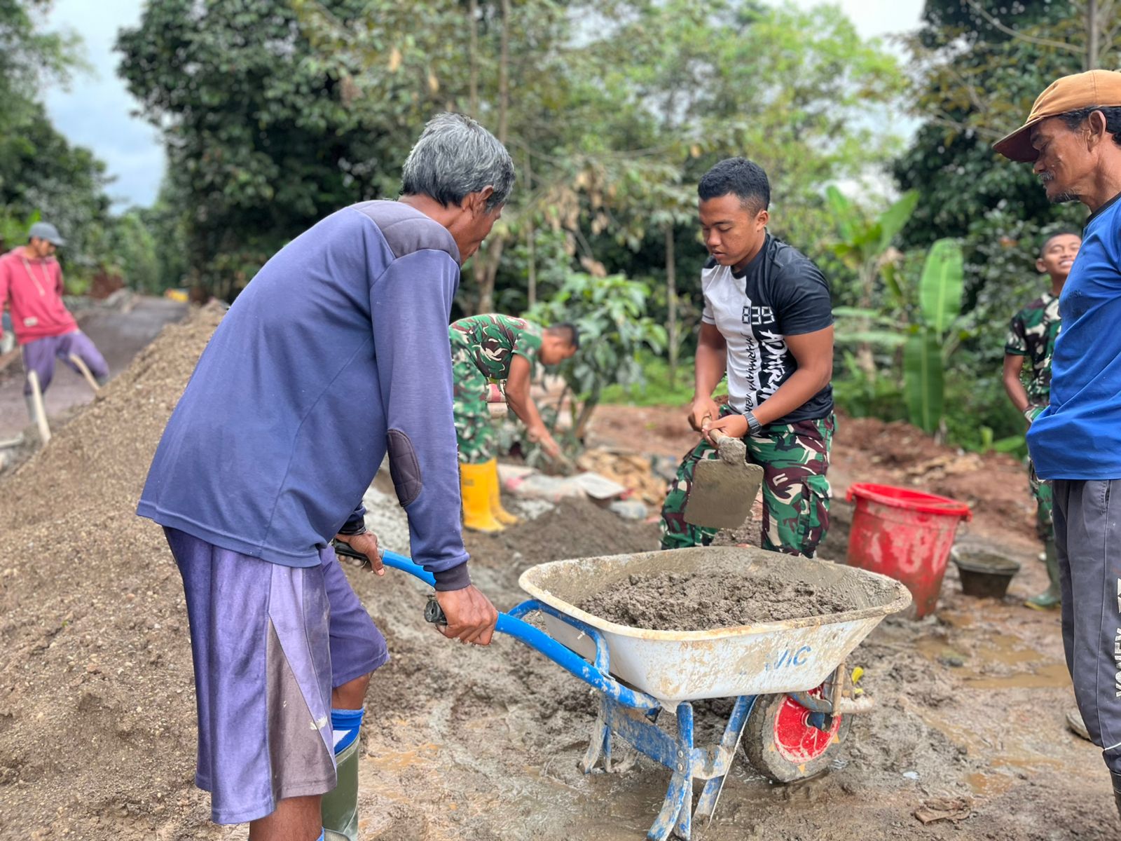 Kegiatan tersebut dilakukan secara gotong royong antara personel Satgas TMMD dan warga setempat demi mempercepat penyelesaian pembangunan infrastruktur desa yang menjadi sasaran program TMMD tahun ini.