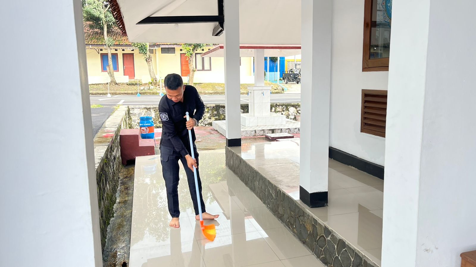 Majalengka – Dalam rangka menjaga kebersihan dan kenyamanan tempat ibadah, personel Sie Humas Polres Majalengka melaksanakan kegiatan korve di Masjid Jami Ussholihin yang berada di lingkungan Mako Polres Majalengka, Senin (9/3/2026).