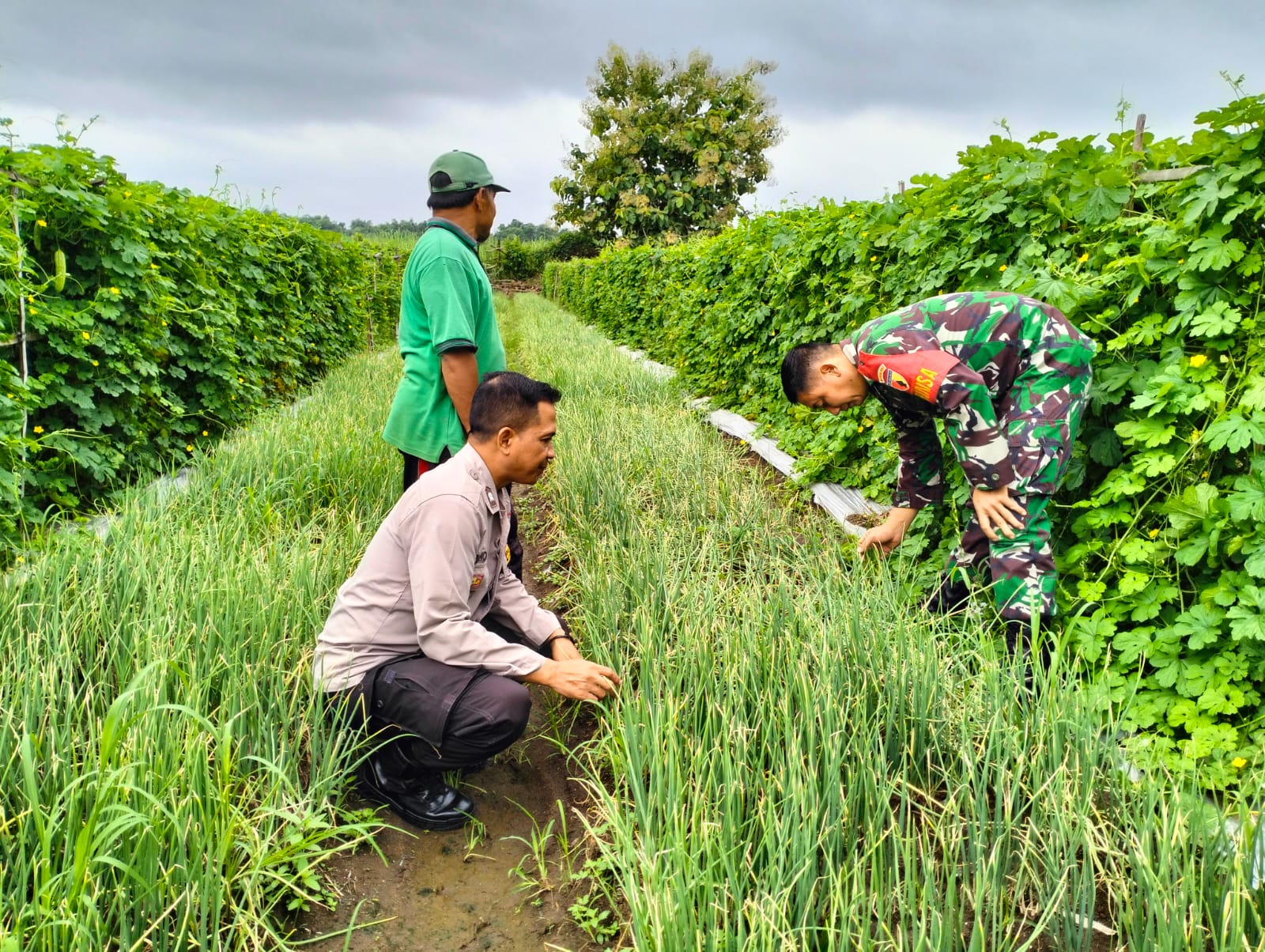 Babinsa Jatisari Turun ke Sawah, Dampingi Petani Rawat Bawang Merah