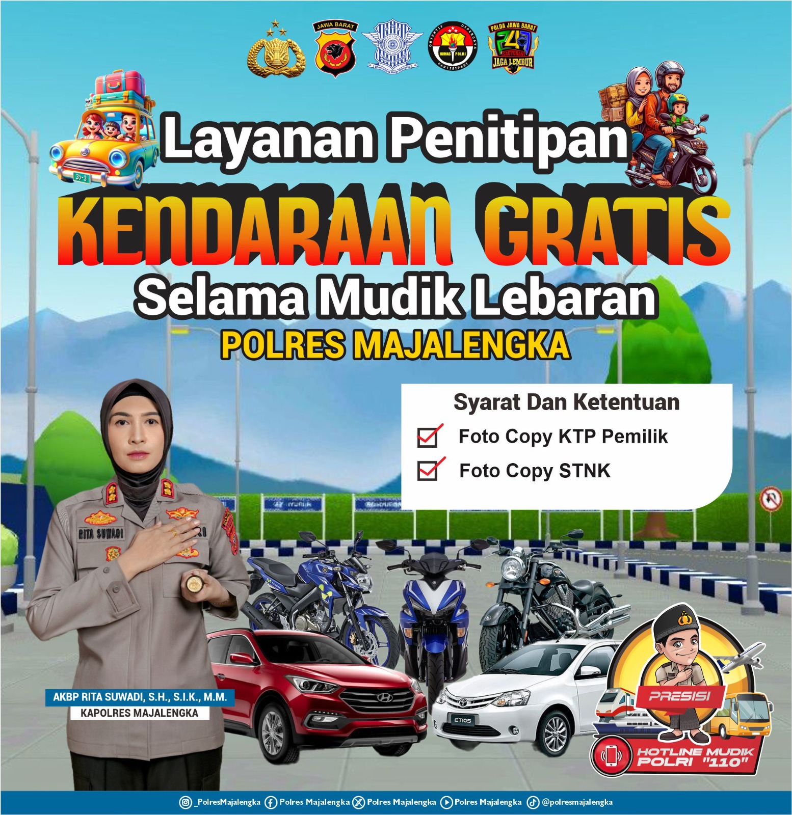 “Kami mengajak masyarakat yang akan mudik dan membutuhkan tempat aman untuk menyimpan kendaraan agar memanfaatkan fasilitas penitipan kendaraan di Polres Majalengka Layanan ini gratis dan merupakan bentuk pelayanan Polri kepada masyarakat,” ujarnya.