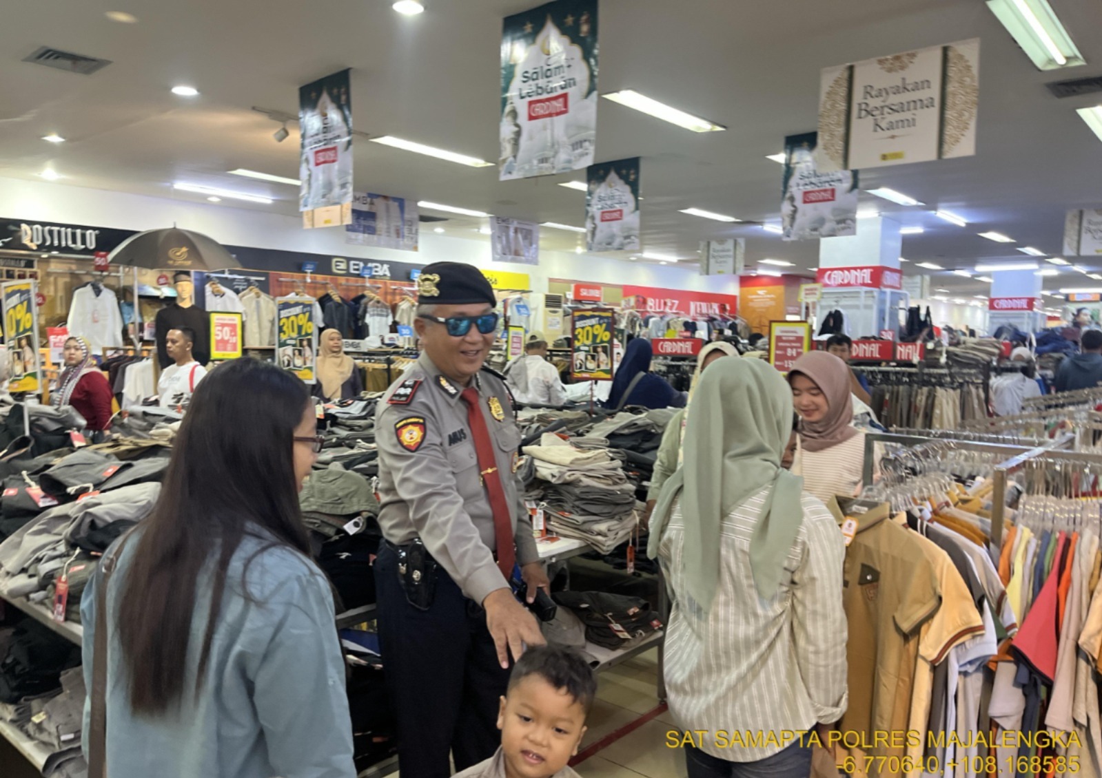 Kapolres Majalengka AKBP Rita Suwadi, S.H., S.I.K., M.M., melalui PLH Kasat Samapta Iptu Dedi Sutikno, S.H., menegaskan bahwa kehadiran polisi di pusat perbelanjaan bertujuan untuk memberikan rasa aman kepada warga yang sedang memenuhi kebutuhan lebaran.