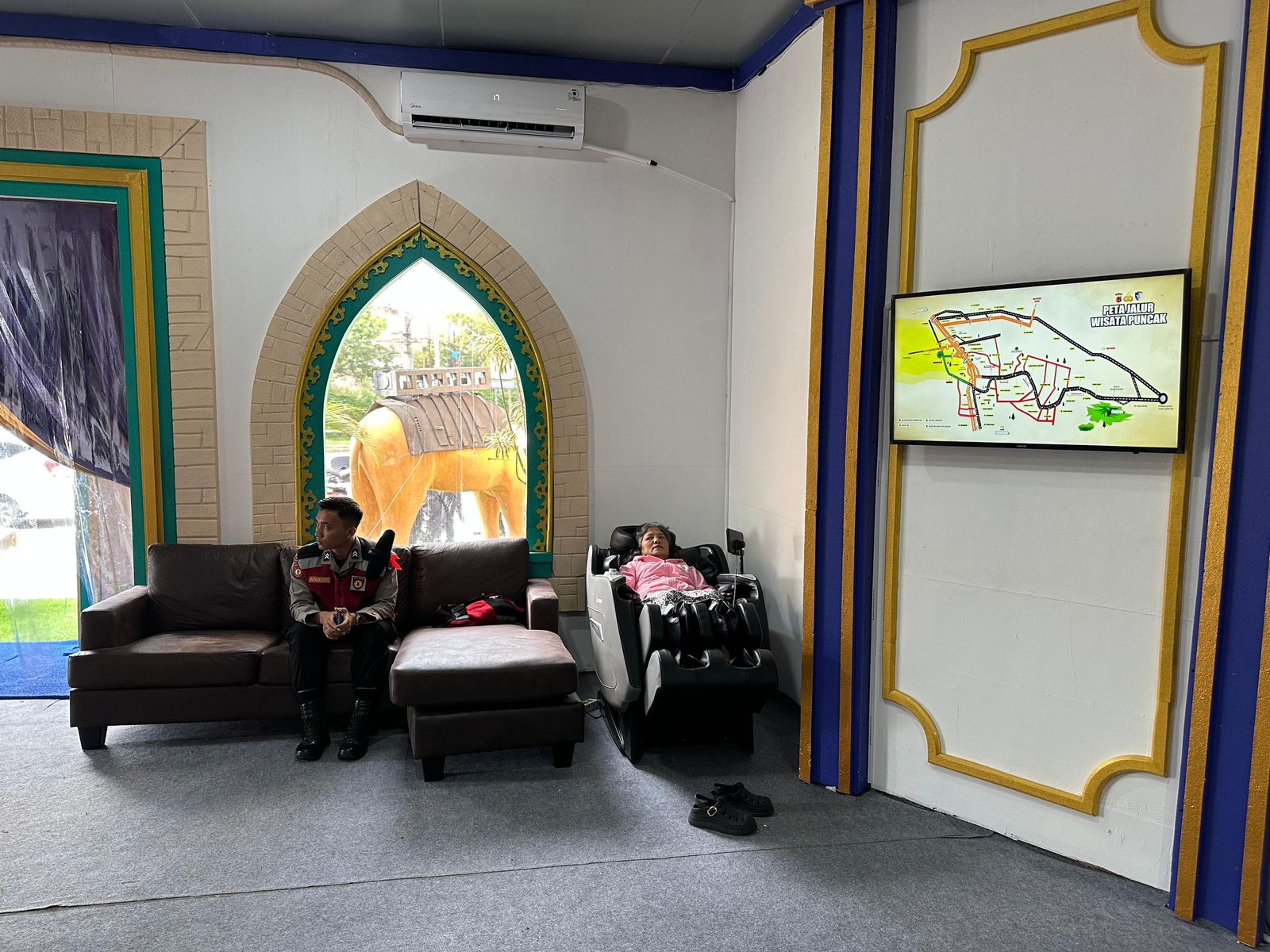 Bogor – Pos Terpadu Polres Bogor yang disiapkan untuk pelayanan arus mudik menyediakan berbagai fasilitas bagi masyarakat, salah satunya kursi pijat gratis yang dapat dimanfaatkan oleh para pemudik untuk melepas lelah selama perjalanan.