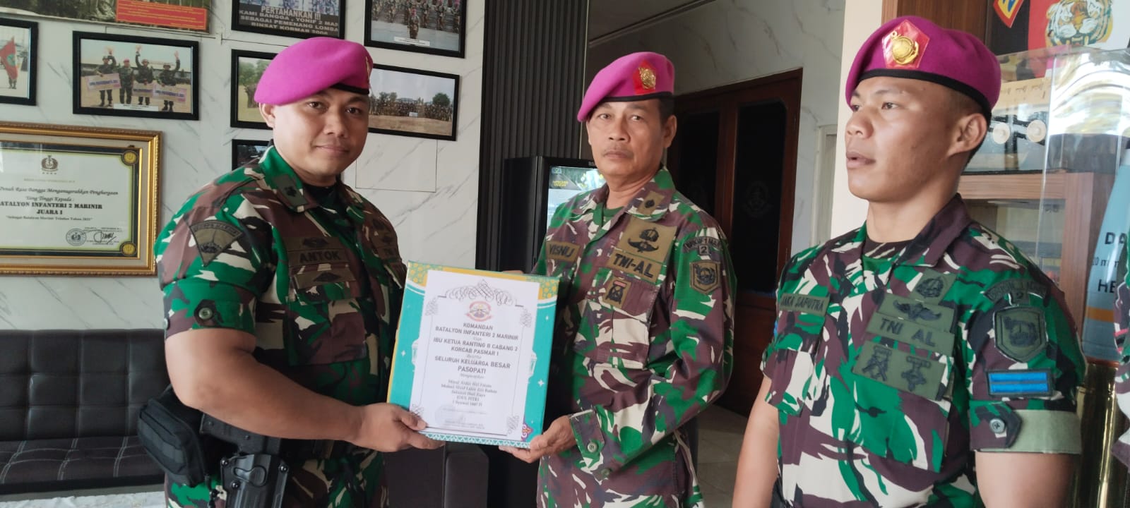 Dalam kegiatan tersebut juga dilaksanakan pemberian bingkisan Lebaran secara simbolis kepada perwakilan prajurit sebagai bentuk perhatian dan kepedulian pimpinan kepada seluruh prajurit Yonif 2 Marinir dalam menyambut Hari Raya Idul Fitri.