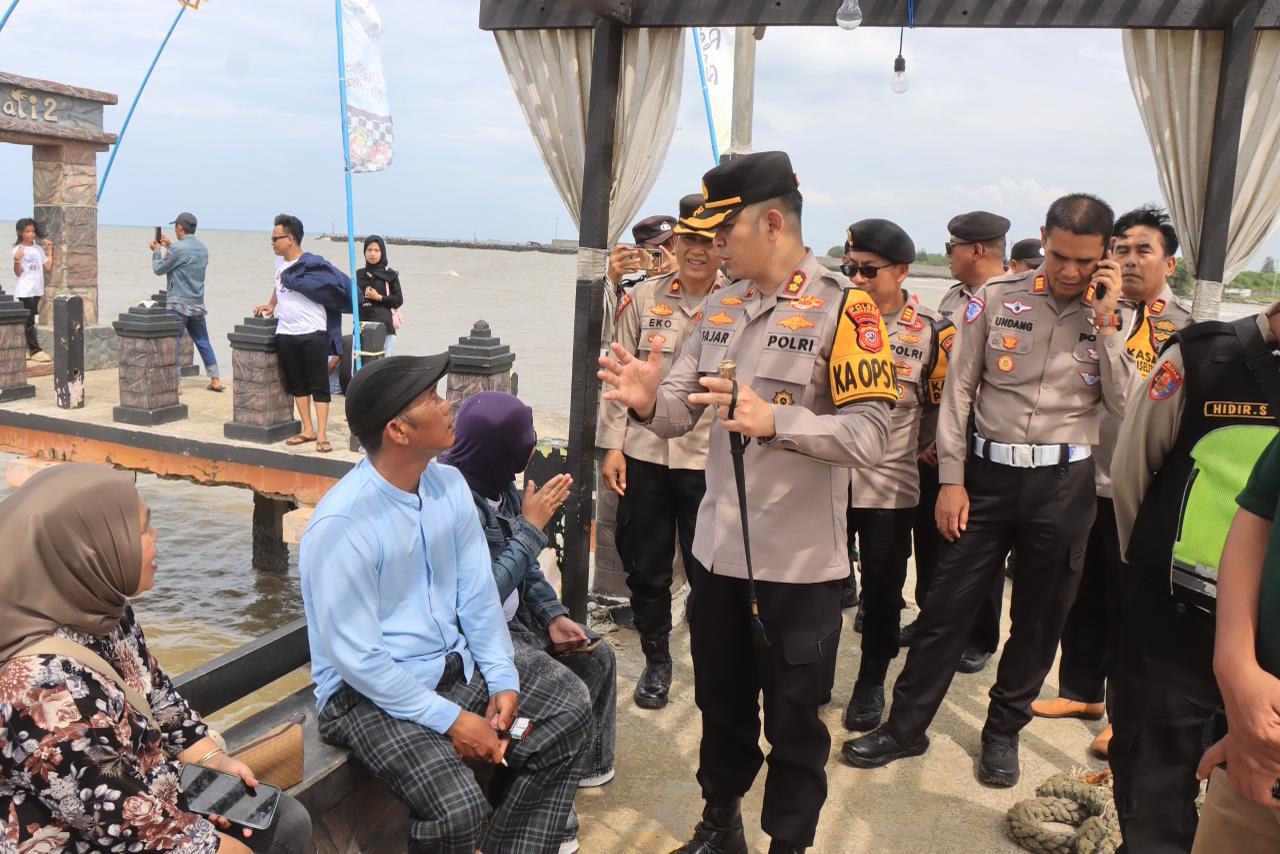 Kapolres Indramayu, AKBP Mochamad Fajar Gemilang, S.I.K., M.H., M.I.K., melakukan kunjungan langsung untuk menyapa warga yang sedang menikmati masa libur lebaran di Pantai Balongan Indah dan Pantai Tirtamaya, Selasa (24/3/2026) kemarin.