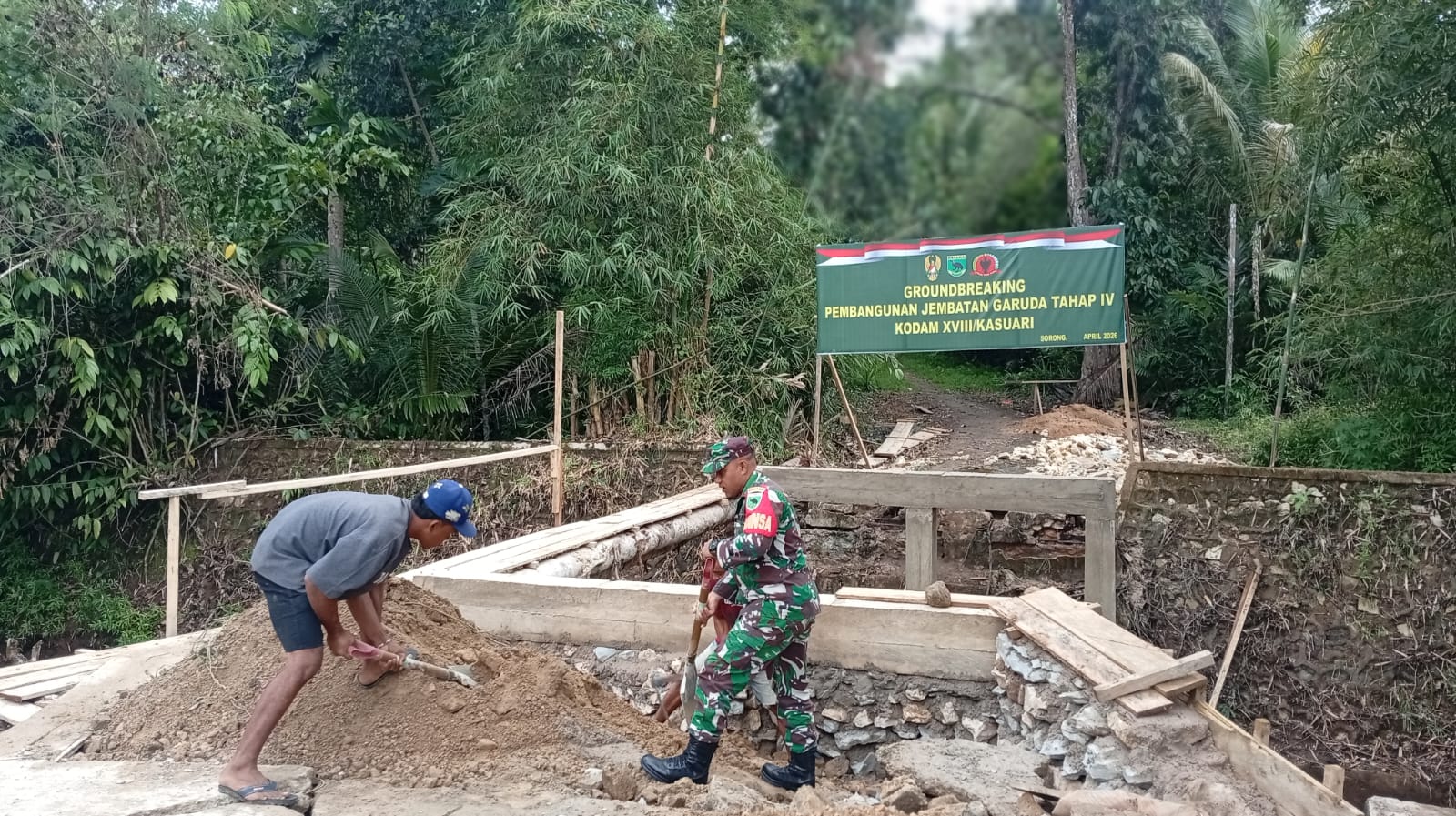 SORONG,BUSERJATIM.COM GROUP – Pembangunan Jembatan Garuda Tahap IV di wilayah Kodim 1802/Sorong terus mengalami peningkatan progres yang cukup pesat. Bertempat di Kampung Klatifi, Distrik Sorong Barat, Kota Sorong, Provinsi Papua Barat Daya. Jumat (17/04/2026).