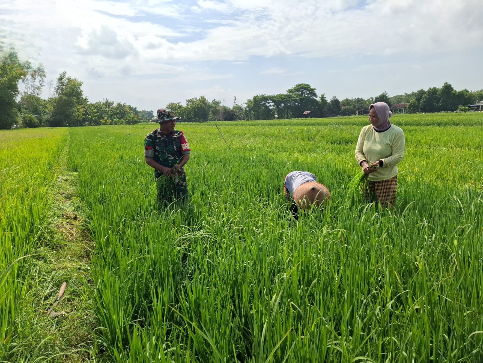 Kegiatan tersebut dilaksanakan pada hari ini sebagai bagian dari upaya pendampingan Babinsa kepada petani di wilayah binaannya. Pembersihan gulma dilakukan untuk menjaga pertumbuhan padi agar tetap optimal dan terhindar dari persaingan unsur hara yang dapat menghambat hasil panen.