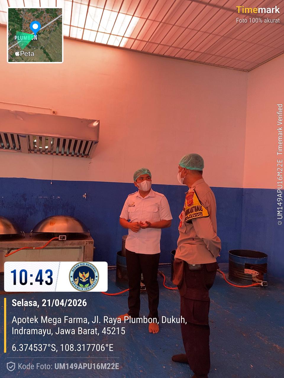 INDRAMAYU,- Bhabinkamtibmas Polsek Indramayu Polres Indramayu Polda Jabar Aiptu Ujang Subagja, melaksanakan kegiatan pengecekan langsung terhadap Satuan Pelayanan Pemenuhan Gizi (SPPG) serta memantau proses pendistribusian Makan Bergizi Gratis (MBG), bertempat di Desa Plumbon, Kecamatan dan Kabupaten Indramayu. Selasa (21/4/2026)