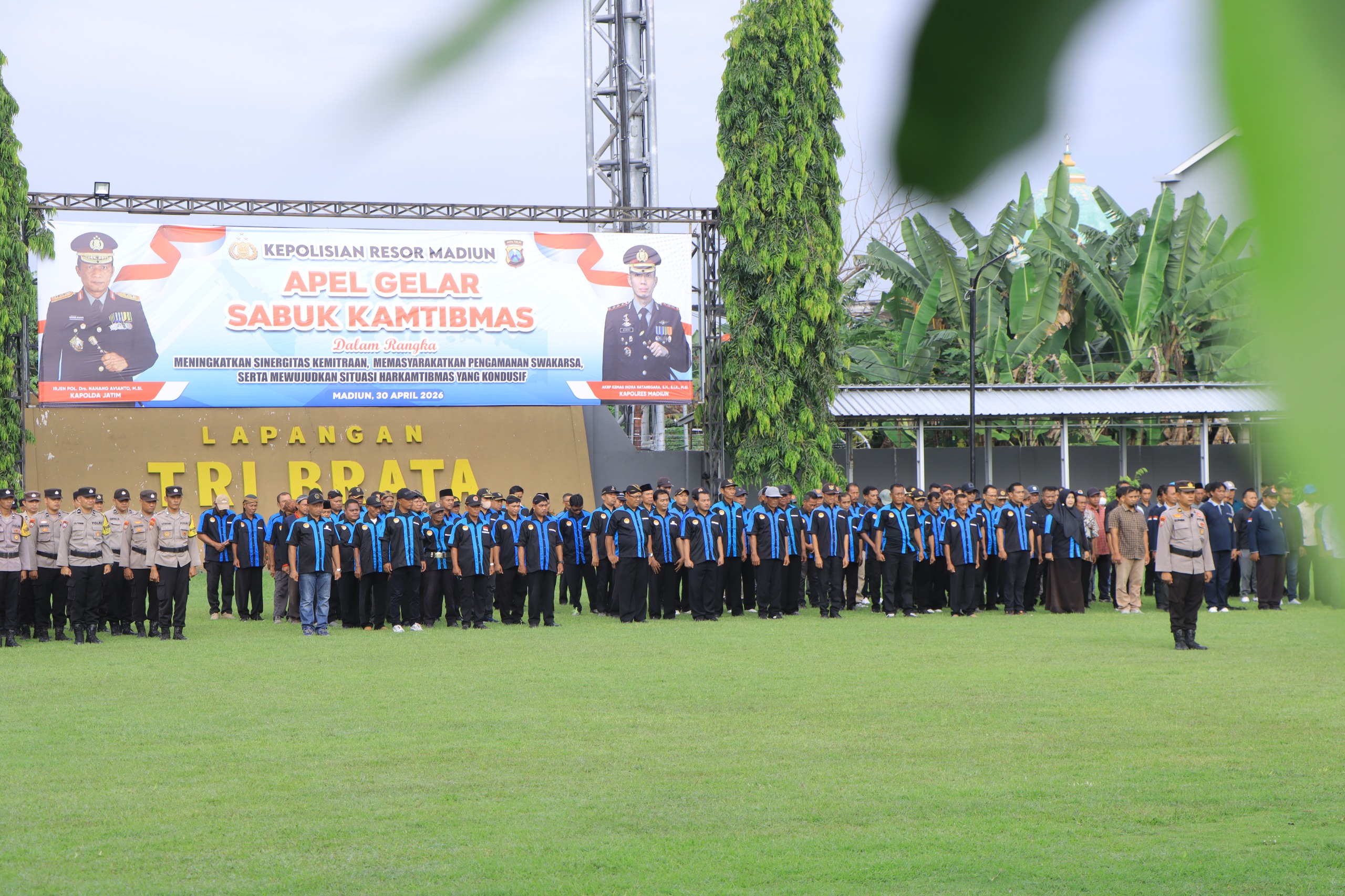 Madiun – Polres Madiun menggelar Apel Gelar Sabuk Kamtibmas di Lapangan Tri Brata Mapolres Madiun sebagai upaya meningkatkan sinergitas kemitraan antara Polri dan masyarakat dalam menjaga keamanan dan ketertiban. Kegiatan tersebut dipimpin langsung oleh Kapolres Madiun AKBP Kemas Indra Natanegara, S.H., S.I.K., M.Si. serta diikuti oleh personel Polres Madiun, anggota Forum Kemitraan Polisi dan Masyarakat (FKPM), serta masyarakat yang tergabung dalam Sabuk Kamtibmas, Kamis (30/4/2026).