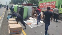 Sigap di Jalur Pantura, Sat Brimob Polda Jabar Respon Cepat Tangani Kecelakaan Mobil Box di Depan Pasar Gaya
