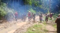 Babinsa Koramil BAS Bersama Warga Mahela Gotong Royong Bersihkan Jalan Desa